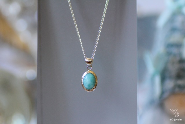 カルセドニーを覆輪留めしたネックレス❆ スカイブルーとホワイトのマーブル模様が首元で優しく輝きます。 今回のホリデーコレクションの覆輪留めは鏨(タガネ)を使って彫金的に細かな模様を打ち付けることで、光の反射がダイヤモンドダストのようにキラキラと輝きます❄ 地金はシルバー、使用したストーンに合わせて石枠から手作りしました。 こちらは天然石を使用しており一点物です。 長さは40cm/50cmからお選びいただけます。 雪景色のような、少しひんやりするような色合いを『雪だるま』に見立てて制作しました☃️ YO jewelry