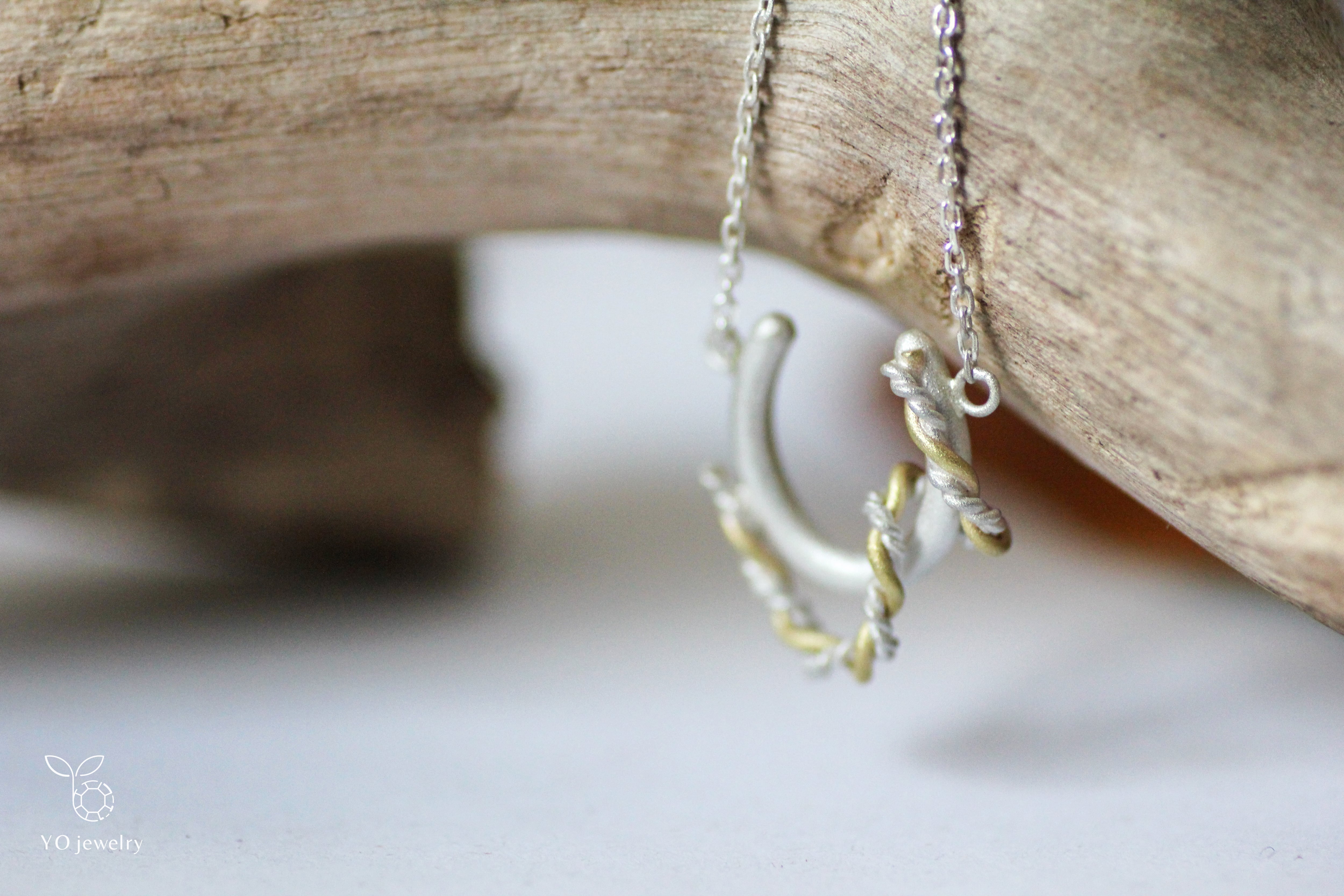 素材はsilver925、真鍮の線で構成しています。